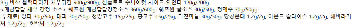 | Big 바삭 블랙타이거 새우튀김 | 90 | 0 | 90 | 0 | 135 | 0 |
